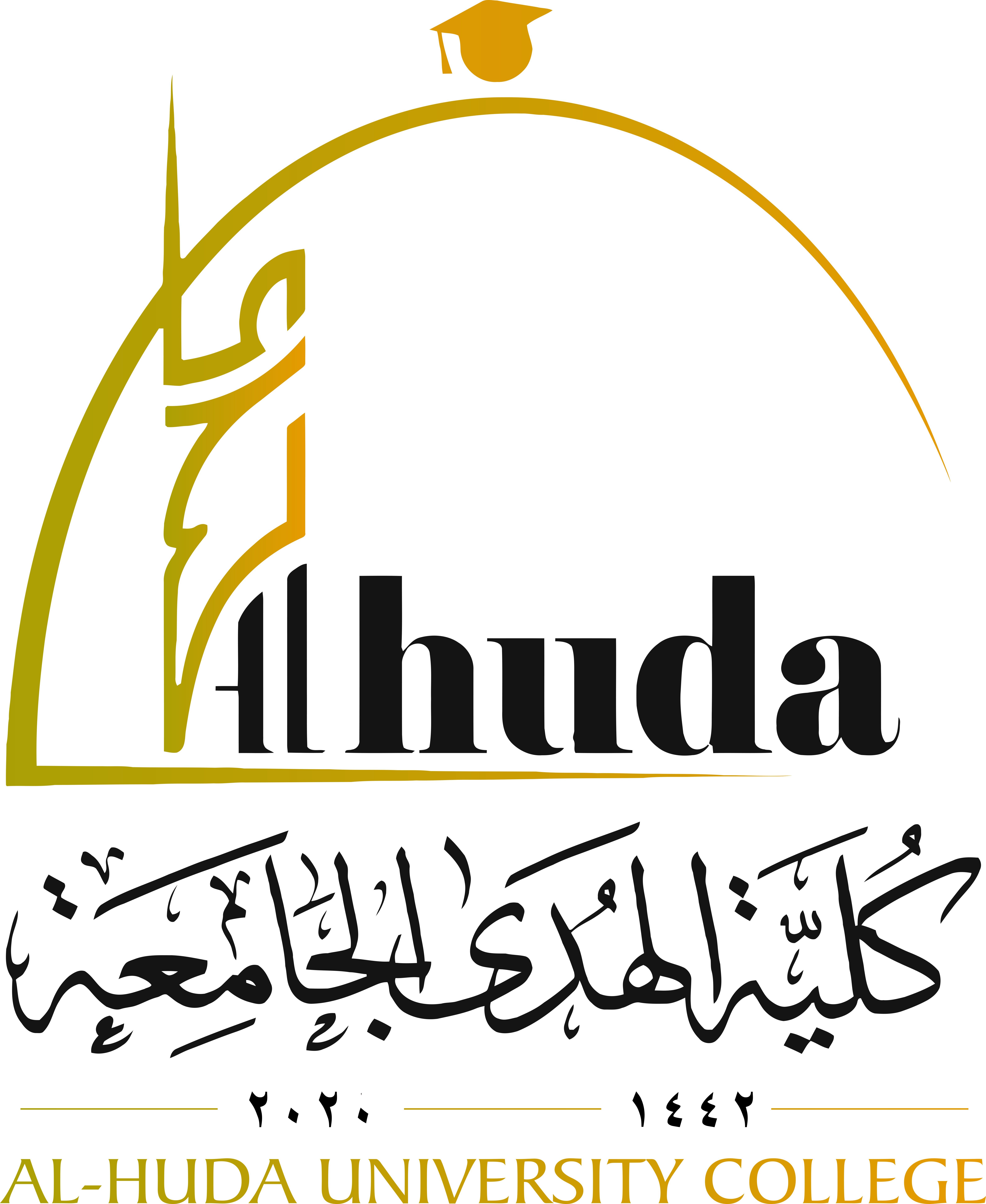 حرصنا أن يكون لشعار كلية الهدى الجامعة دلالات واضحة ومكونات بسيطة مستوحات من هوية البيئة الثقافية وان يكون معاصراً يتحقق فيه شكل الحداثة ومعاني الأصالة وعلى النحو الآتي:
